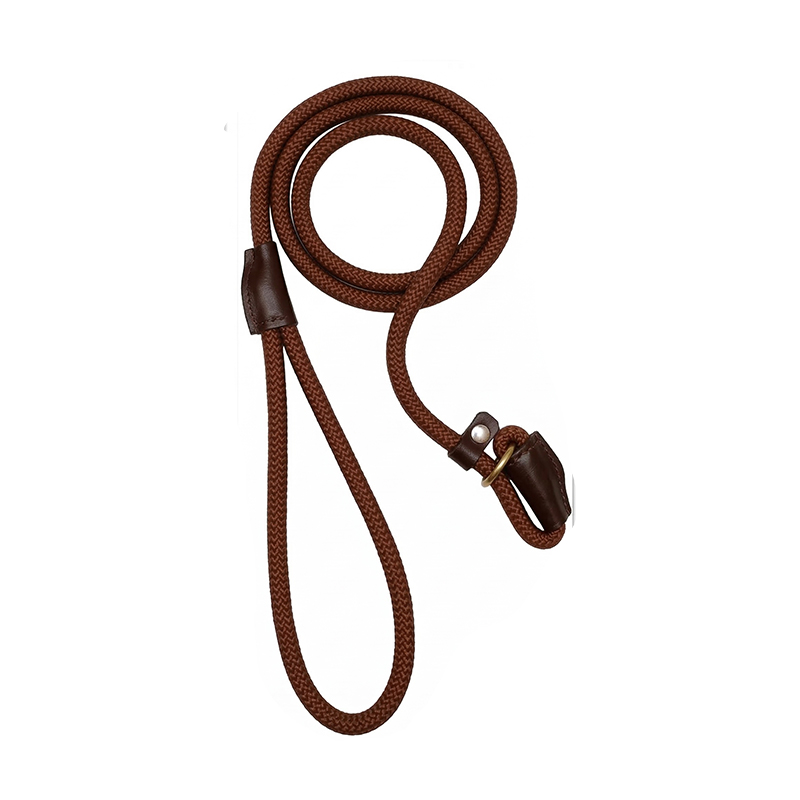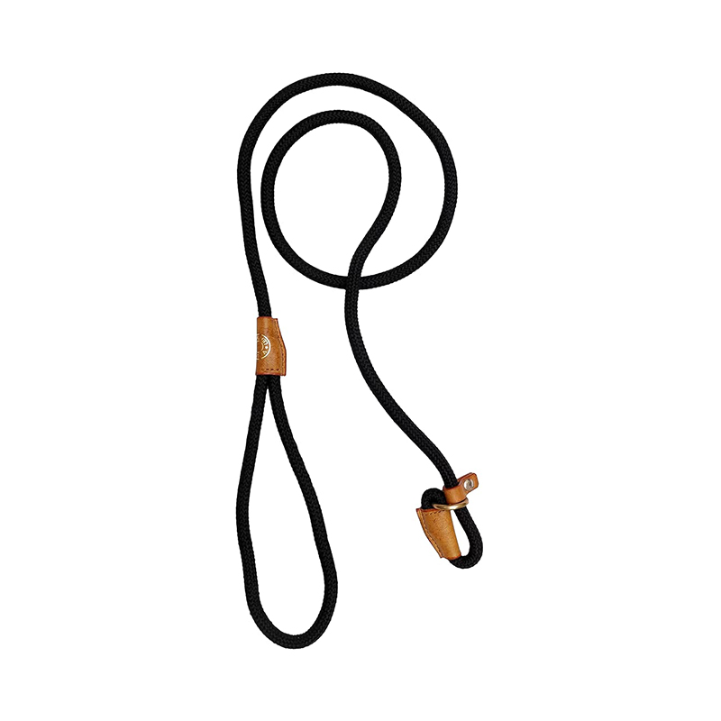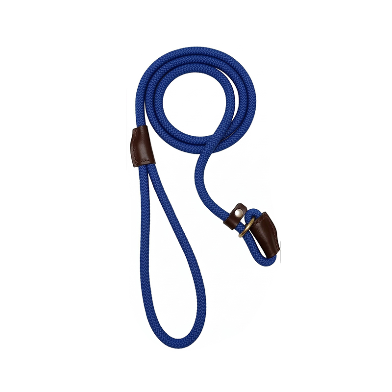 Slip Leash with Adjustable Stopper.Nylon Rope with Leather Trimmings. Hand Crafted. Length-5 Feet(Including Loop), Thickness: 1 Cms (Blue), 1 Count (Pack of 1)